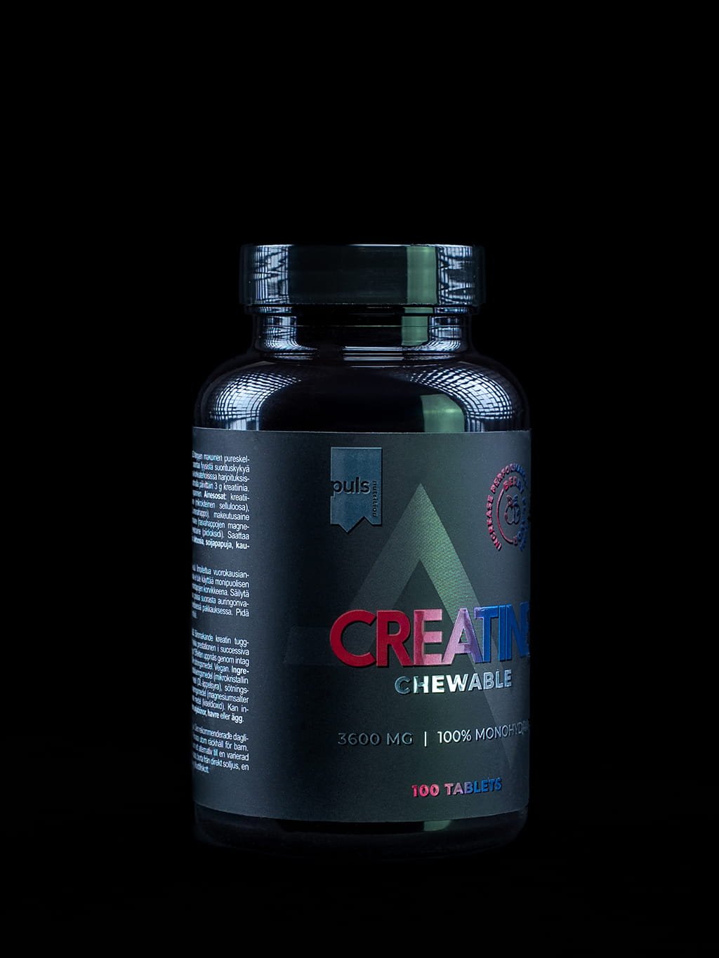 PULS NUTRITION Creatine Chewable představuje malou revoluci ve vaší sportovní výživě. Každá dávka (4 tablety) obsahuje 3 g čistého kreatin monohydrátu, který prokazatelně zvyšuje fyzickou výkonnost a pomáhá maximalizovat růst čisté svalové hmoty. Tyto lahodné veganské tablety bez cukru s příchutí lesního ovoce můžete mít neustále u sebe – v posilovně, v práci i na cestách. Zvyšte svou tréninkovou kapacitu a posuňte své limity chytře, pohodlně a mimořádně chutně!