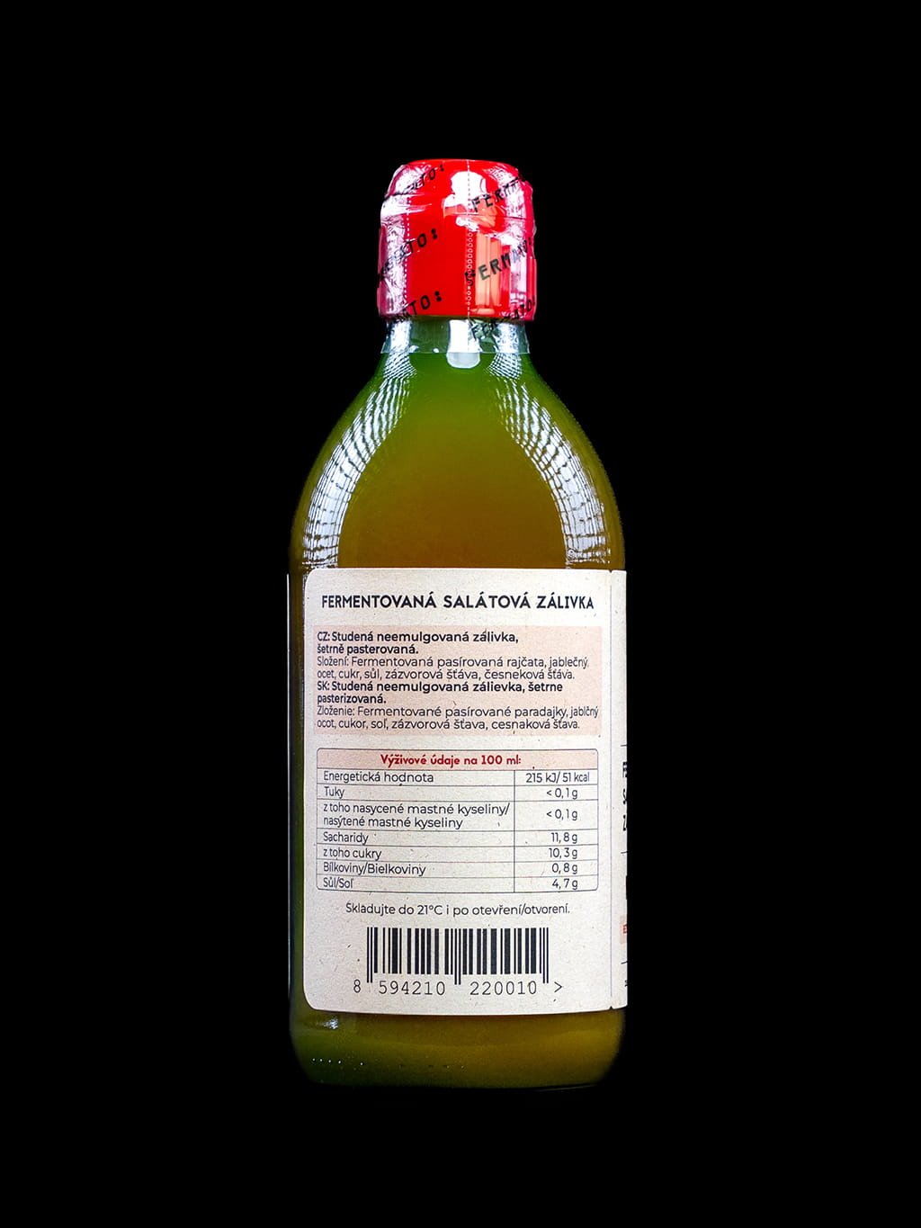 - Zálivka je šetrně pasterovaná, vhodná pro vegany a vyrobená ze surovin, které přirozeně neobsahují lepek.