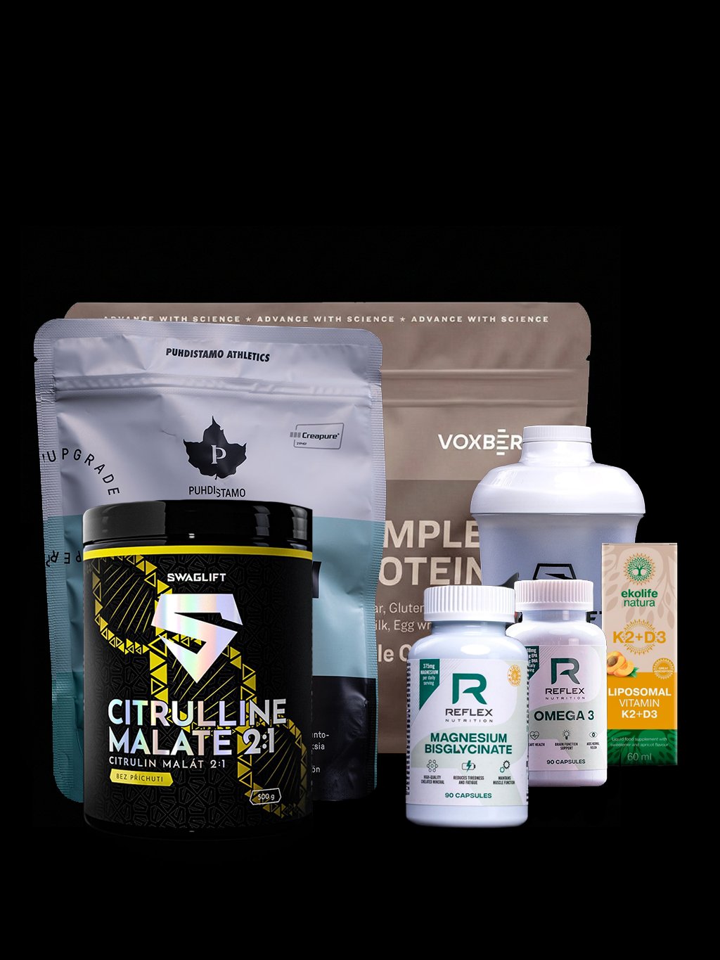 Balíček SUPERHUMAN TRAINING je sestaven tak, aby podpořil sílu, regeneraci, energii a mentální soustředění – zkrátka všechno, co potřebuješ k tréninku na hranici lidských možností.