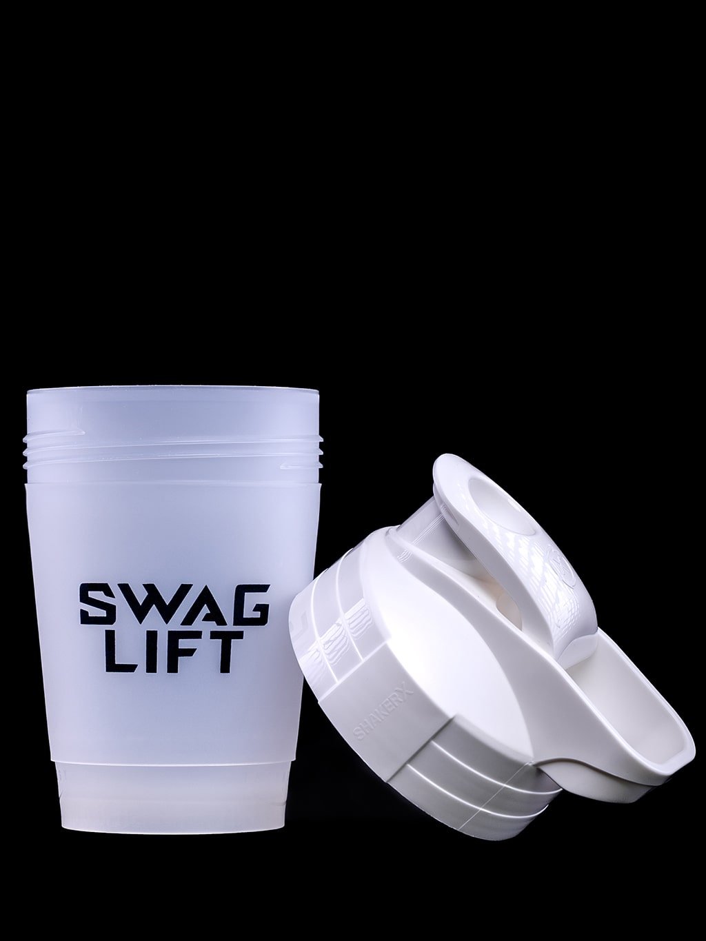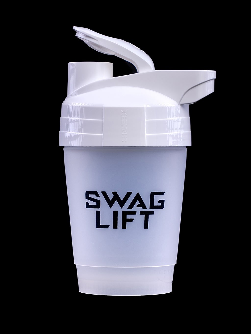 Menší verze ikonického shakeru se zaobleným dnem – nyní v elegantním bílém provedení s logy SWAGLIFT! Praktický a odolný společník o objemu 400 ml, ideální do fitka, na cesty i pro každodenní použití.