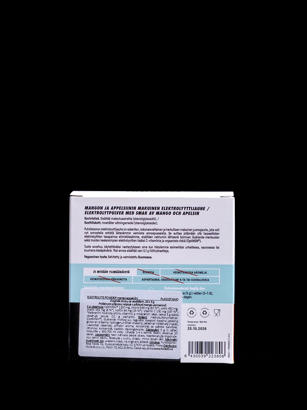 - Prášek na přípravu nápoje s elektrolyty, s příchutí mango-pomeranč
