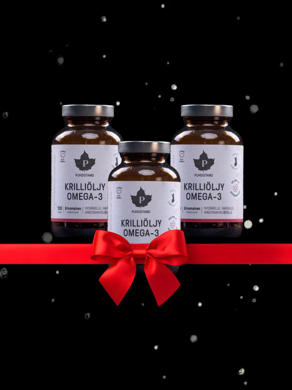 Omega-3 ze superčistého zdroje – krillu žijícího v oceánu kolem Antarktidy, kde je nejčistší mořská voda na světě. Omega-3 jsou získané metodou Ecoharvest, která minimalizuje nechtěný úlovek, kdy jsou uloveni i jiní mořští živočichové (tak je to běžné u rybolovu, který je nejběžnějším zdrojem produktů omega-3). Krill použitý pro výrobu Omega-3 Puhdistamo žije v mořích daleko od rafinérií a velkého lodního provozu, výsledný produkt si proto udržuje vysokou čistotu. Omega-3 jsou navíc v přírodní fosfolipidové formě, která je pro tělo přirozená a tedy i vysoce využitelná (lze srovnat s konzumací celých ryb).